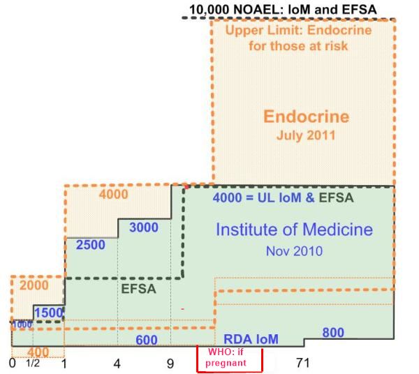 - 4,000 IU of Vitamin D is OK - 19 organizations agree - 2018 - Rest of world = 4,000 IU,WHO = 0 IU