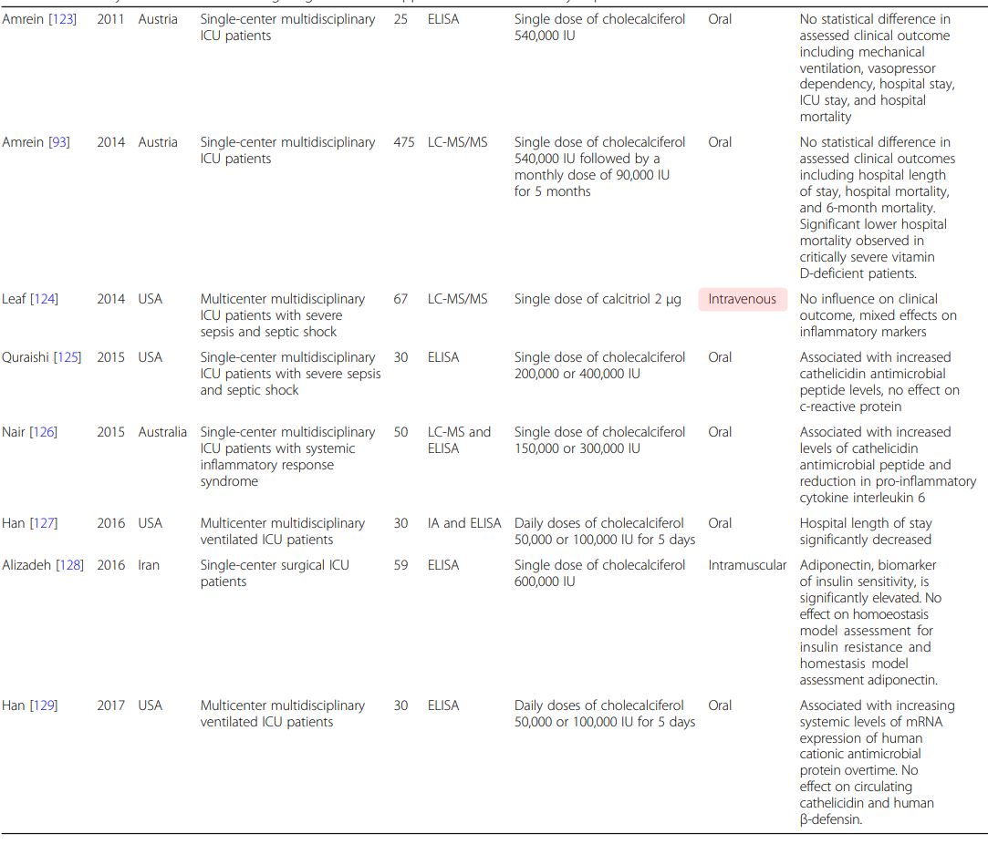 Nair P, Venkatesh B, Center JR. Vitamin D deficiency and supplementation in critical illness-the known knowns and known unknowns. Crit Care 2018; 22(1): 276.