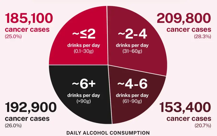 Globally, alcohol intake accounted for 4% of all cancers diagnosed in 2020