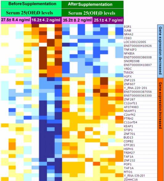 Figure 3. Heatmaps of vitamin D responsive genes whose expression levels change after 2 months vitamin D3 supplementation.