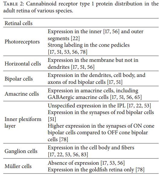 - Retina has both CBD1 and CBD2 receptors - 2016 (THC may help)