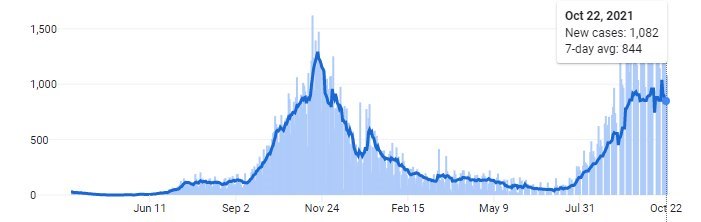 • "Its infections are among the highest on the continent, with a seven-day incidence of 971.5 per 100,000 people"