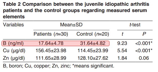 Children with Idiopathic arthritis have very low Boron levels – Jan 201610460 visitors, last modified 01 Nov, 2018, This page is in the following categories (# of items in each category)Attached files