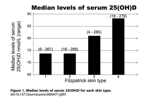 Pigmentation and vitamin D metabolism in Caucasians: low vitamin D serum levels in fair skin types in the UK.