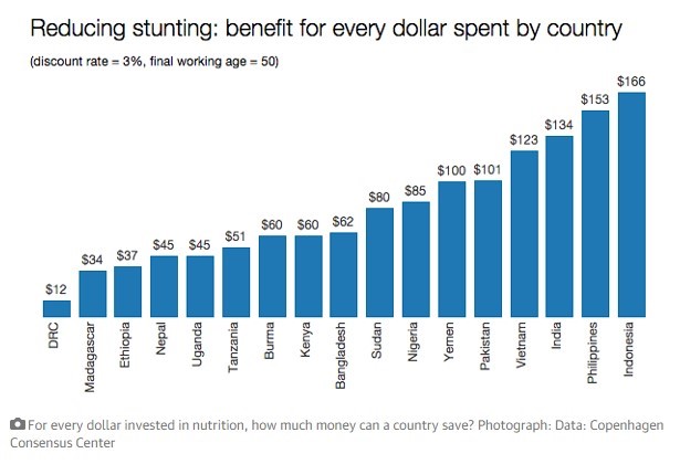 About $100 more income during woking life for every $1 spent on nutrition to prevent stunting