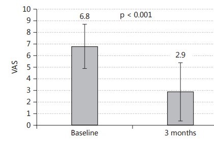 Fig. 2. VAS of the children with growing pains at the baseline and after 3 months.