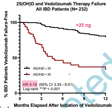 Now a study finds that a drug used to treat some gut problems (Vedolizumab) does 5X better if there is even a modest level of Vitamin D