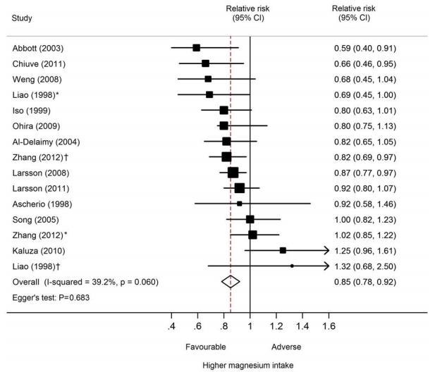 • (11 studies on dietary magnesium intake,
