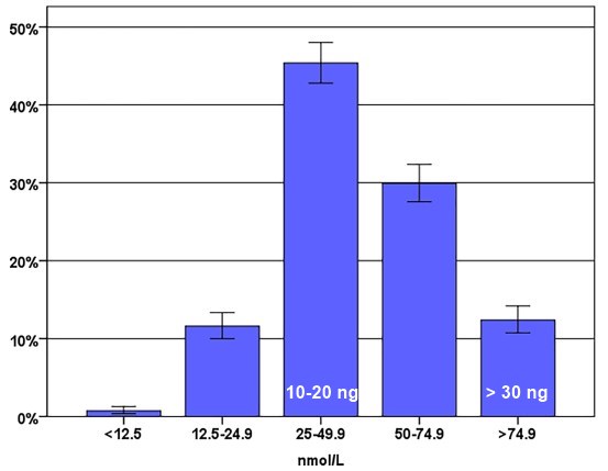 % with < 20 ng of vitamin D at time of birth