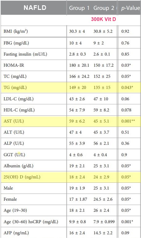 - Non-Alcoholic Fatty Liver Disease (NAFLD) treated by Vitamin D (20,000 IU weekly after loading dose) – RCT June 2016