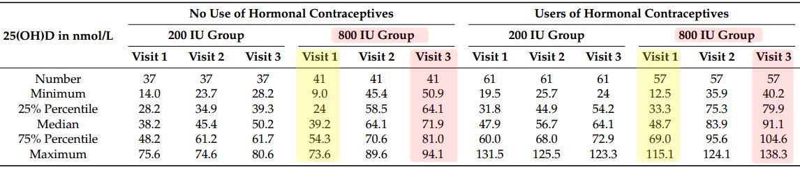 - . . .” users of hormonal contraceptives had higher baseline levels and a stronger increase in 25(OH)D levels . . .”