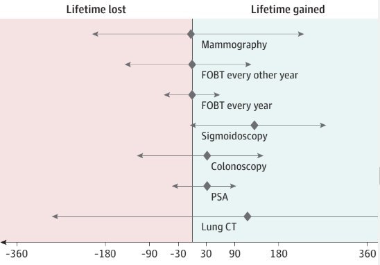 - "Conclusions and relevance: The findings of this meta-analysis suggest that current evidence does not substantiate the claim that common cancer screening tests save lives by extending lifetime, except possibly for colorectal cancer screening with sigmoidoscopy."