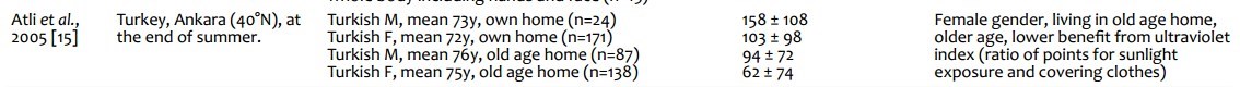 The prevalence of Vitamin D deficiency and effects of ultraviolet light on Vitamin D levels in elderly Turkish population