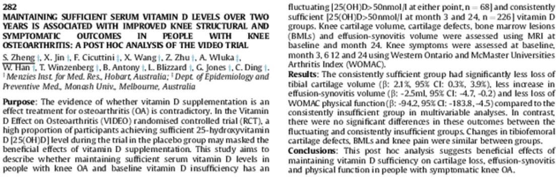 Reduced knee osteoarthritis if consistently supplement with vitamin D for 2 years – April 2017