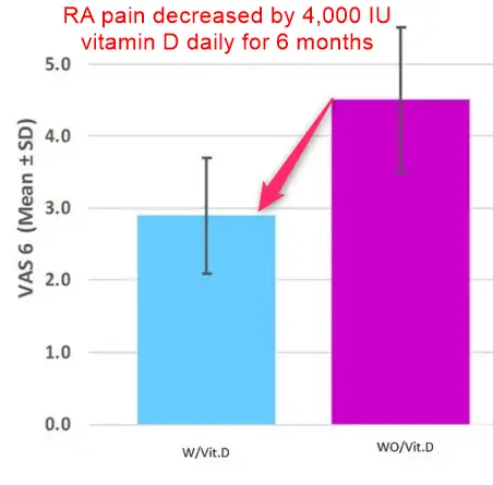 RA pain reduced by 4,000 IU of vitamin D daily (RCT, 6 months) - July 2025