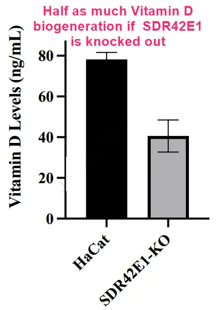 - SDR42E1 knockout accumulates 7-dehydrocholesterol, hindering vitamin D production.