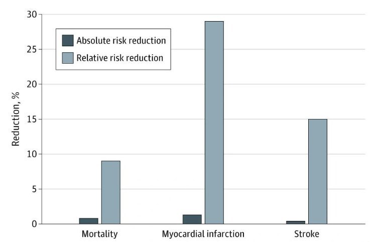 - 1.3% absolute risk reduction by statins - meta-analysis March 2023