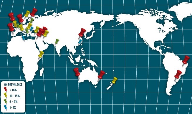 Notice: Except for Brazil (40%!), the problems are not near the equator