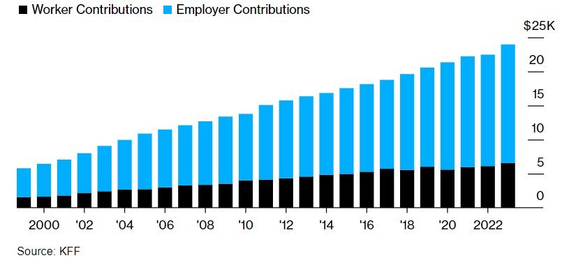 US Health Insurance now 24,000 a year - up 7% in a year - Oct 2023
