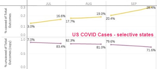 Vaccinated were 28 percent of cases, 23 percent of deaths (waning)- CDC Sept 2021
