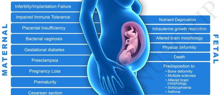 - Maternal vitamin D deficiency increases the risk of preeclampsia, bacterial vaginosis, gestational diabetes, spontaneous abortions, and preterm labor and can harm the fetus by growth restriction, physical deformity, and increasing future health risks.