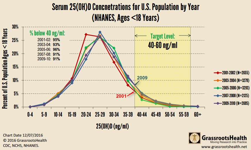 Vitamin D in US children: those having more than 40 ng increased 60 percent (2001-2010) - Dec 2016Printer Friendly Follow this page for updates9126 visitors, last modified 07 Jun, 2021, This page is in the following categories (# of items in each category)Attached files