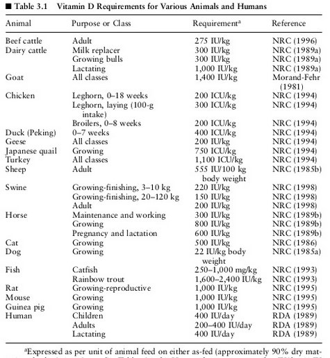 - Animals get a lot more vitamin D than minimum recommended for humans – 2016