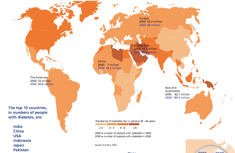 World map of diabetes from WHO