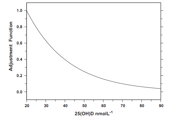 • the adjustment function AD(t) is introduced to describe the vitamin D photodegradation being especially strong, with the serum 25(OH)D concentration approaching the saturation level of 80 nmol L-1,