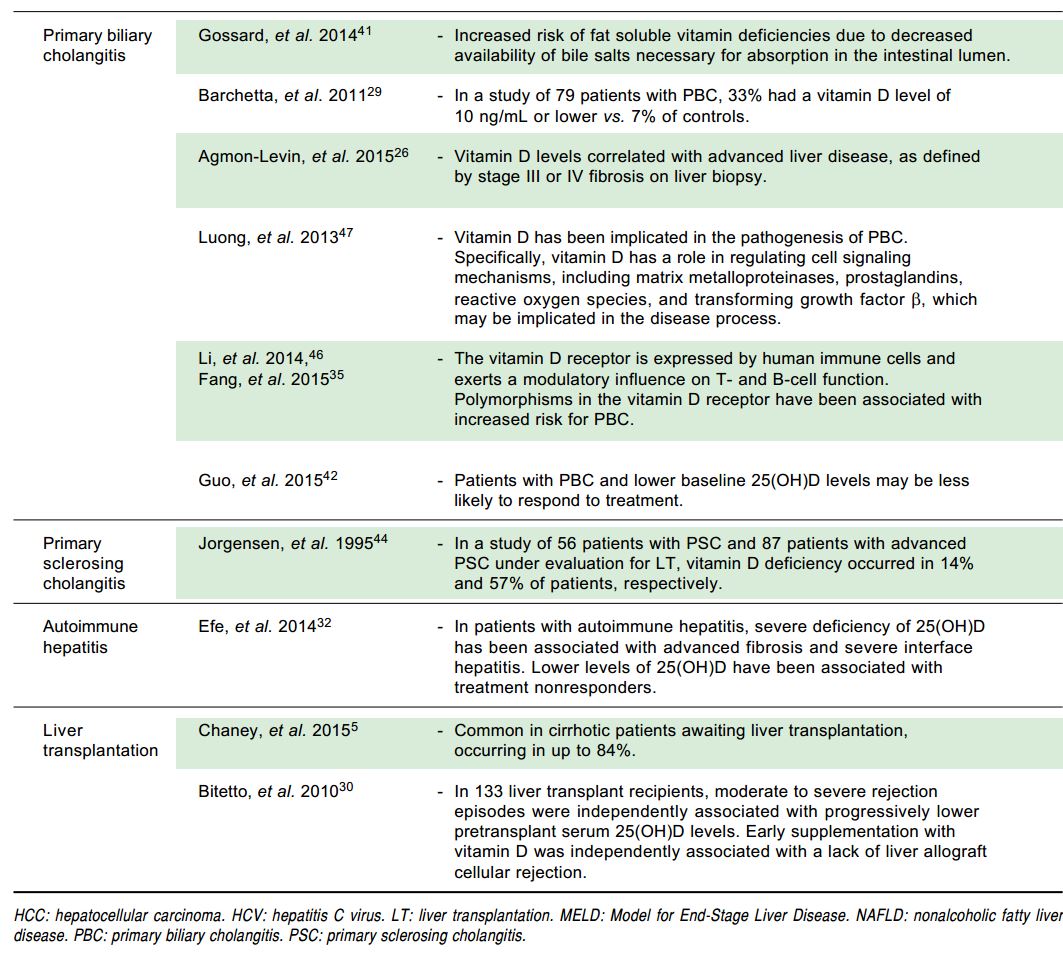 "Published studies provide evidence for routine screening for hypovitaminosis D in patients with liver disease" - Adverse Effects of Vitamin D Deficiency on Outcomes of Patients With Chronic Hepatitis B. Oct 2014