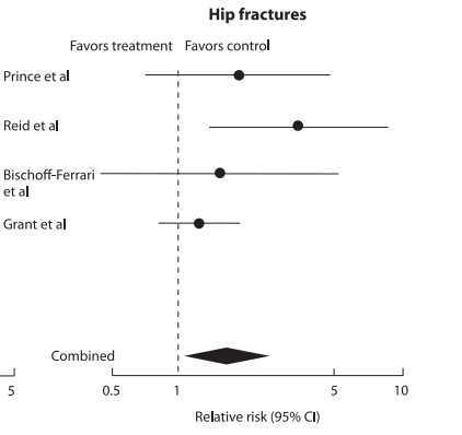 Another Harvard team analyzed seven trials that followed 170,991 women for several years and found “no association between total calcium intake and [reduced] hip fracture risk.” - Extra calcium won't lower bone fracture risk, ladies MSNBC May 2011